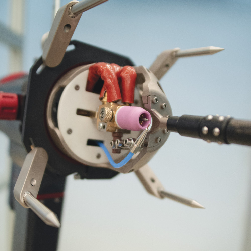 The electrode holder system with preset angles adapts to any welding geometry and makes setup easy and repeatable